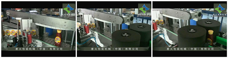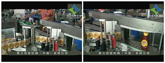 該設(shè)備按照客戶要求定制,可進(jìn)行單側(cè)和雙側(cè)的貼標(biāo)生產(chǎn),圖有星火自貢貼標(biāo)機公司提供。